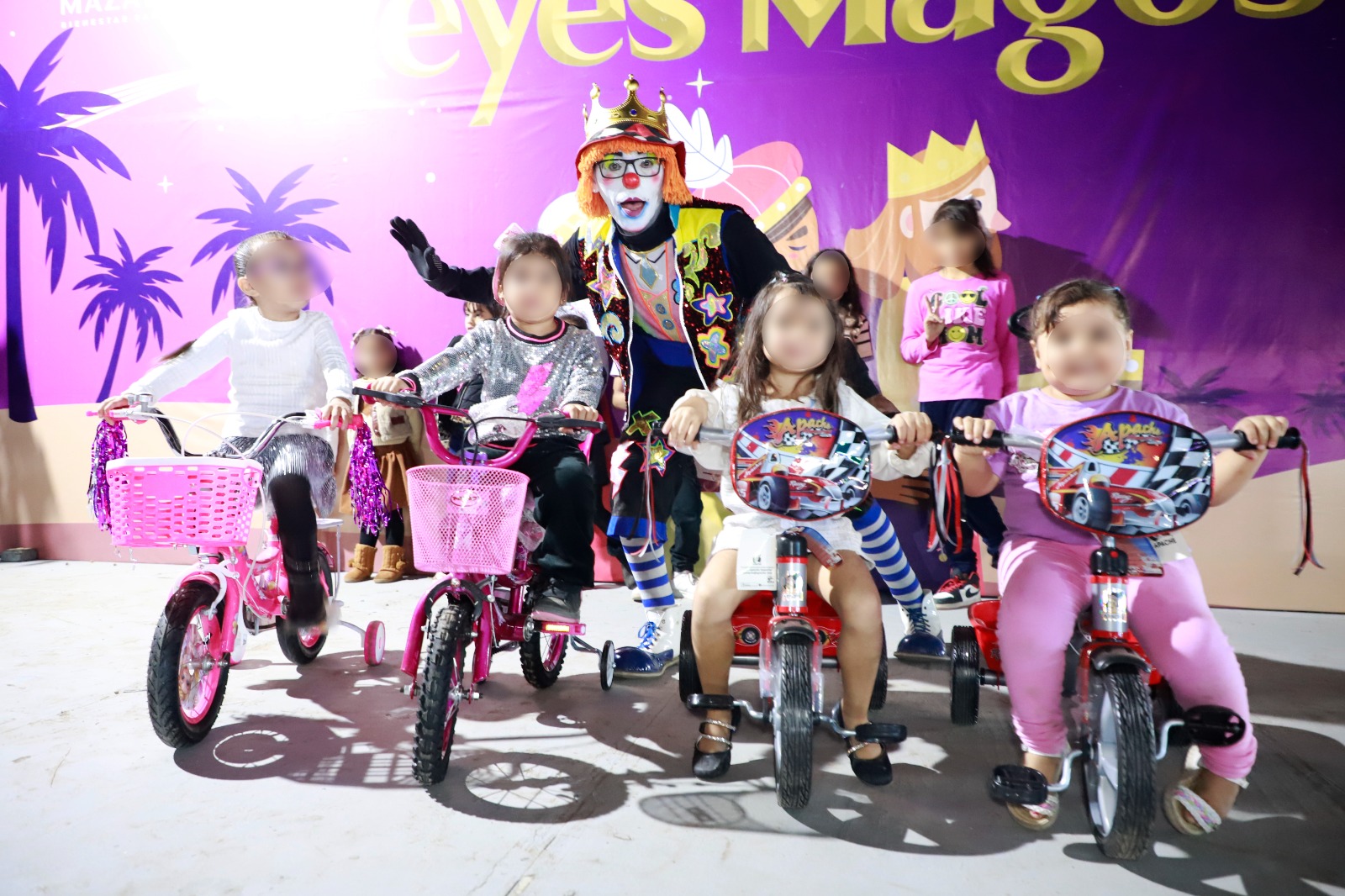 La magia del Día de Reyes se hizo presente con la llegada de Melchor, Gaspar y Baltasar, quienes fueron recibidos con entusiasmo por las y los pequeños. El programa incluyó el show del payaso Triki Trakes y la participación de Maz-Fest, quienes presentaron a las Guerreras K-Pop, llenando el escenario de energía, baile y diversión.